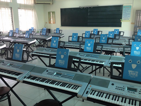 圖一:愛心音樂教室內(nèi)嶄新的電子琴排列整齊