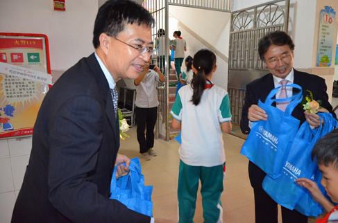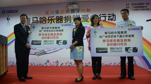 2014年10月22日,由雅馬哈樂器音響(中國(guó))投資有限公司主辦,廣東駿瑋琴行、廣州教育局協(xié)辦的“與音樂牽手 隨幸福成長(zhǎng)——雅馬哈樂器愛心捐贈(zèng)行動(dòng)”在廣東省市天河區(qū)岑村小學(xué)舉行。走訪了包括岑村小學(xué)在內(nèi)農(nóng)林下路小學(xué)等學(xué)校后,雅馬哈決定在這些學(xué)校內(nèi)設(shè)立“愛心音樂教室”以支援其音樂教育設(shè)施,捐贈(zèng)立式鋼琴2臺(tái)、電子琴60臺(tái)、音響設(shè)備2套等總價(jià)值20萬(wàn)元的雅馬哈樂器。活動(dòng)當(dāng)天,廣東省教育廳教育裝備中心正處~調(diào)研員彭永鳴、廣州市教育局教育裝備中心蔣熙倫主任、天河區(qū)教育局副局長(zhǎng)陳江濤、雅馬哈樂器音響(中國(guó))投資有限公司鶴見照彥總經(jīng)理等嘉賓出席了捐贈(zèng)儀式,與2所受贈(zèng)學(xué)校的校方代表會(huì)面交流。