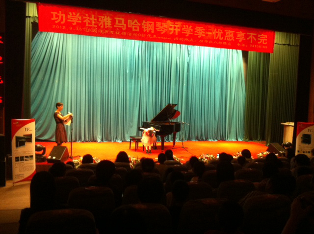 天津功學(xué)社于2012年9月18日在天津音樂(lè)學(xué)院音樂(lè)廳舉行了一場(chǎng)雅馬哈鋼琴展銷(xiāo)音樂(lè)會(huì)活動(dòng)。此次活動(dòng)邀請(qǐng)了天津音樂(lè)學(xué)院的老師以及琴童和學(xué)生家長(zhǎng)到場(chǎng)觀摩。活動(dòng)在音樂(lè)學(xué)院音樂(lè)廳舉行,給鋼琴學(xué)員創(chuàng)造展示水平的機(jī)會(huì),并讓學(xué)生和家長(zhǎng)近距離的感受雅馬哈鋼琴的魅力,體驗(yàn)雅馬哈鋼琴的卓越性能,并有專業(yè)老師對(duì)演奏者進(jìn)行點(diǎn)評(píng)和指導(dǎo)。